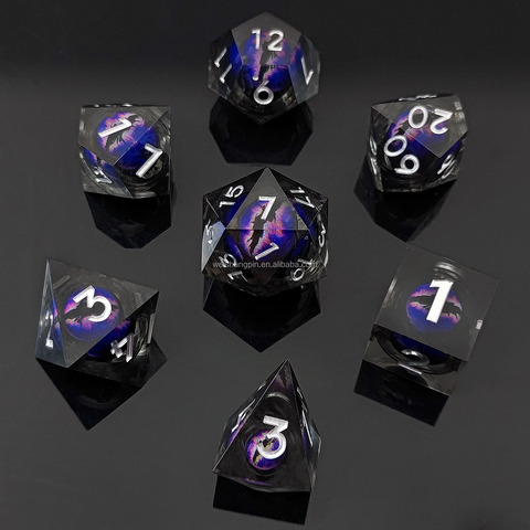 DND viola flusso liquido Core e occhi dadi in resina con bordo affilato per Pathfinder & D & D giochi di ruolo